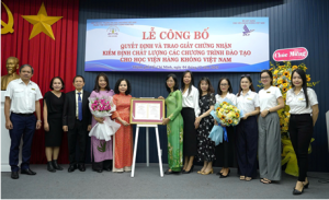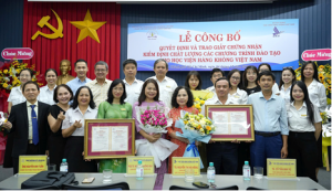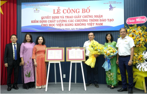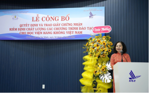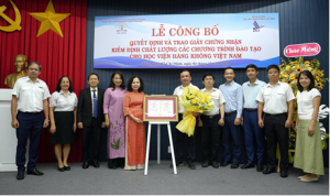 Ngày 04/12/2025, Trung tâm Kiểm định chất lượng giáo dục (KĐCLGD) – Hiệp hội Các trường đại học, cao đẳng Việt Nam (CTĐHCĐVN) đã phối hợp với Học viện Hàng không Việt Nam tổ chức Lễ công bố Quyết định và trao Chứng nhận Kiểm định chất lượng 02 Chương trình đào tạo (CTĐT) trình độ đại học, gồm: ngành Ngôn ngữ Anh và ngành Công nghệ thông tin cho Học viện Hàng không Việt Nam.