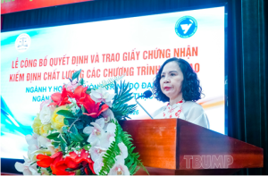 Phát biểu tại buổi Lễ, PGS.TS. Nguyễn Phương Nga – Giám đốc Trung tâm KĐCLGD – Hiệp hội CTĐHCĐVN đã đánh giá cao những nỗ lực của Nhà Trường và chúc mừng Nhà Trường, chúc mừng các Khoa của Trường có CTĐT được cấp Chứng nhận KĐCLGD đợt này.
