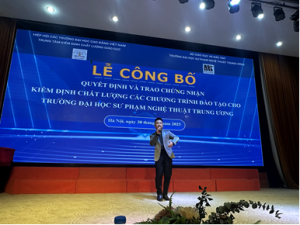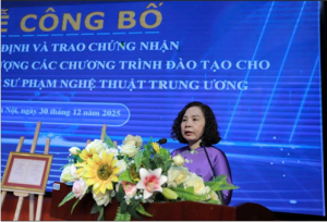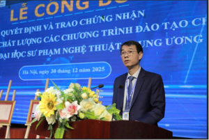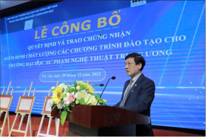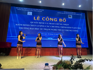 Chiều ngày 30/12/2025, Trung tâm Kiểm định chất lượng giáo dục (KĐCLGD) – Hiệp hội Các trường đại học, cao đẳng Việt Nam (CTĐHCĐVN) đã phối hợp với Trường Đại học Sư phạm Nghệ thuật Trung ương tổ chức Lễ công bố Quyết định và trao Chứng nhận Kiểm định chất lượng 05 chương trình đào tạo (gồm 04 CTĐT ngành: Thiết kế thời trang; Thanh nhạc; Piano; Quản lý văn hóa trình độ đại học và 01 CTĐT ngành Quản lý văn hóa trình độ thạc sĩ cho Trường Đại học Sư phạm Nghệ thuật Trung ương.