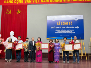 Ngày 29/12/2025, Trung tâm Kiểm định chất lượng giáo dục (KĐCLGD) – Hiệp hội Các trường đại học, cao đẳng Việt Nam (CTĐHCĐVN) đã phối hợp với Trường Đại học Mỹ thuật Việt Nam tổ chức Lễ công bố Quyết định và trao Chứng nhận Kiểm định chất lượng Cơ sở giáo dục chu kỳ 2 và 04 chương trình đào tạo, gồm các ngành Hội họa; Đồ họa; Điêu khắc trình độ đại học và ngành Mỹ thuật tạo hình trình độ thạc sĩ cho Trường Đại học Mỹ thuật Việt Nam.