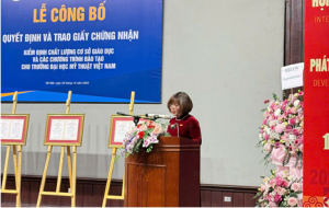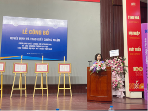 Phát biểu tại buổi Lễ, PGS.TS. Nguyễn Phương Nga – Giám đốc Trung tâm KĐCLGD – Hiệp hội CTĐHCĐVN đã đánh giá cao những nỗ lực của Nhà Trường và chúc mừng Nhà Trường, chúc mừng các Khoa của Trường có CTĐT được cấp Chứng nhận KĐCLGD đợt này.